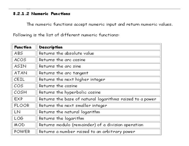Numeric Functions In Sql Oracle