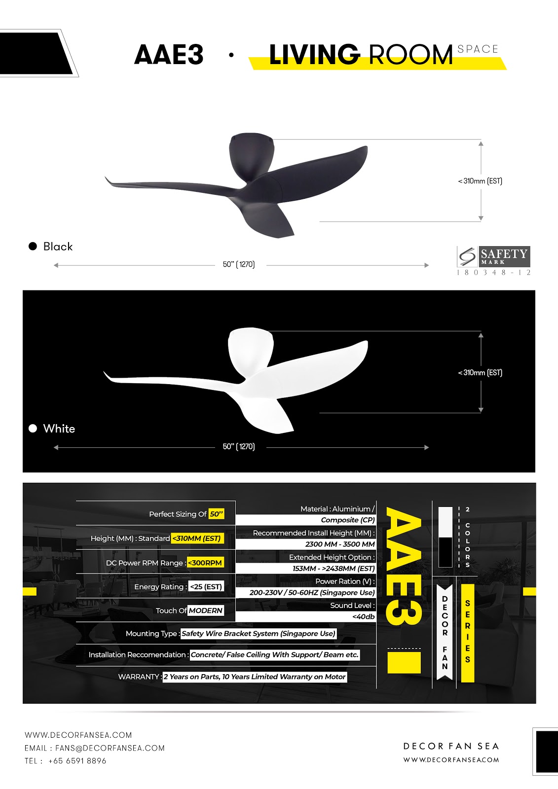 Lazer Es48 Deco White Color Sweep 1200 Mm 360 Rpm 5 Star Energy