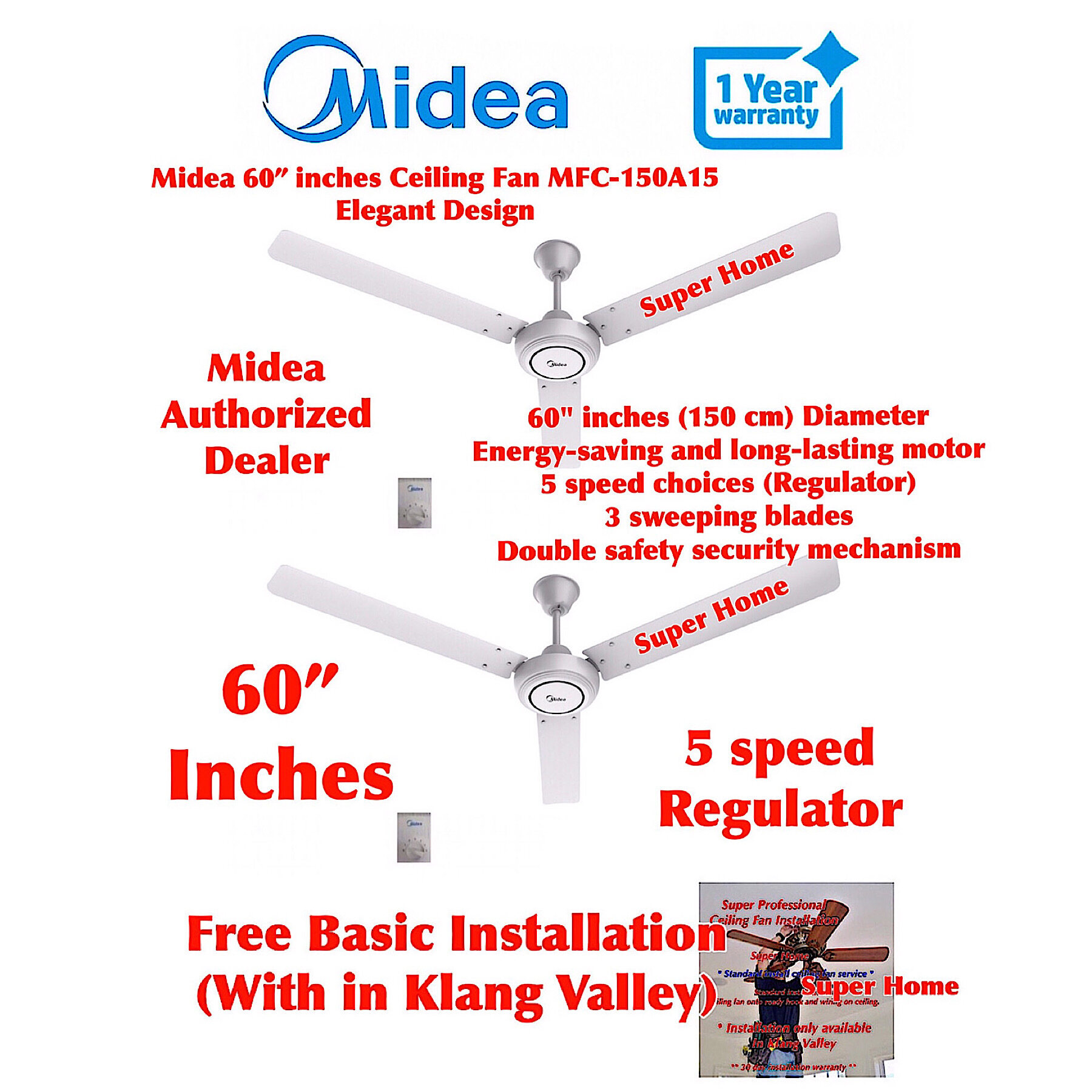 New Midea Regulator Ceiling Fan White Home Appliances